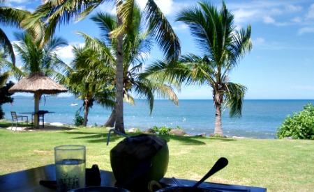 Clear skies and warm as I enjoy my lunch on Denarau Island near Nadi