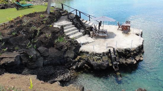 10 bures nestled between the ocean and a volcanic forest. Situated on a cliff rather than a beach, means there's great diving and snorkelling.